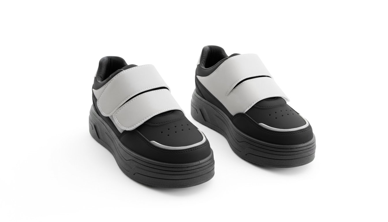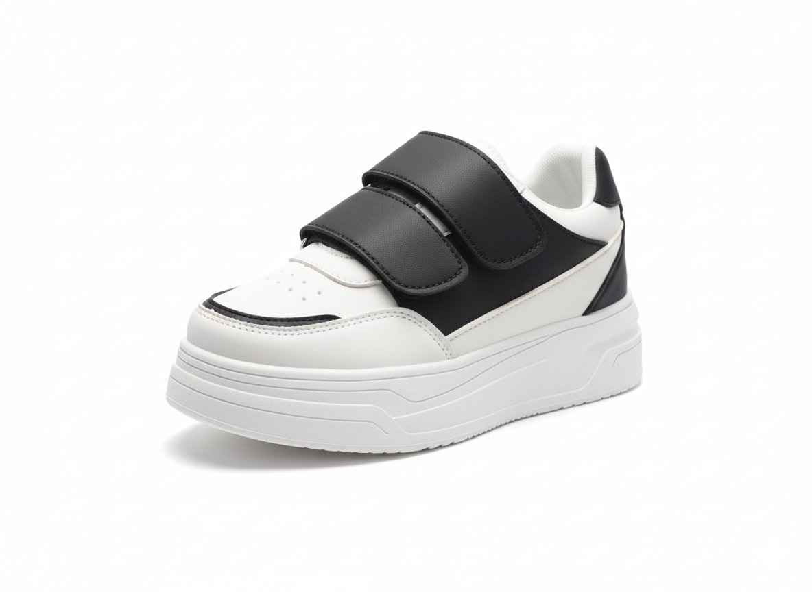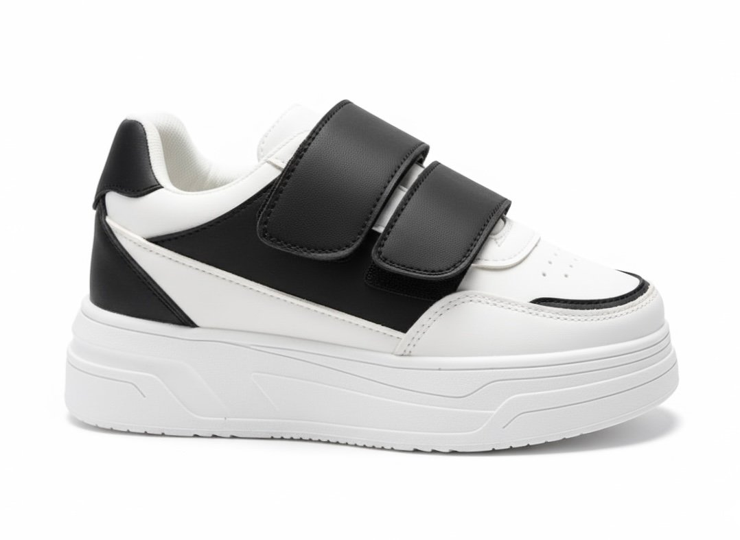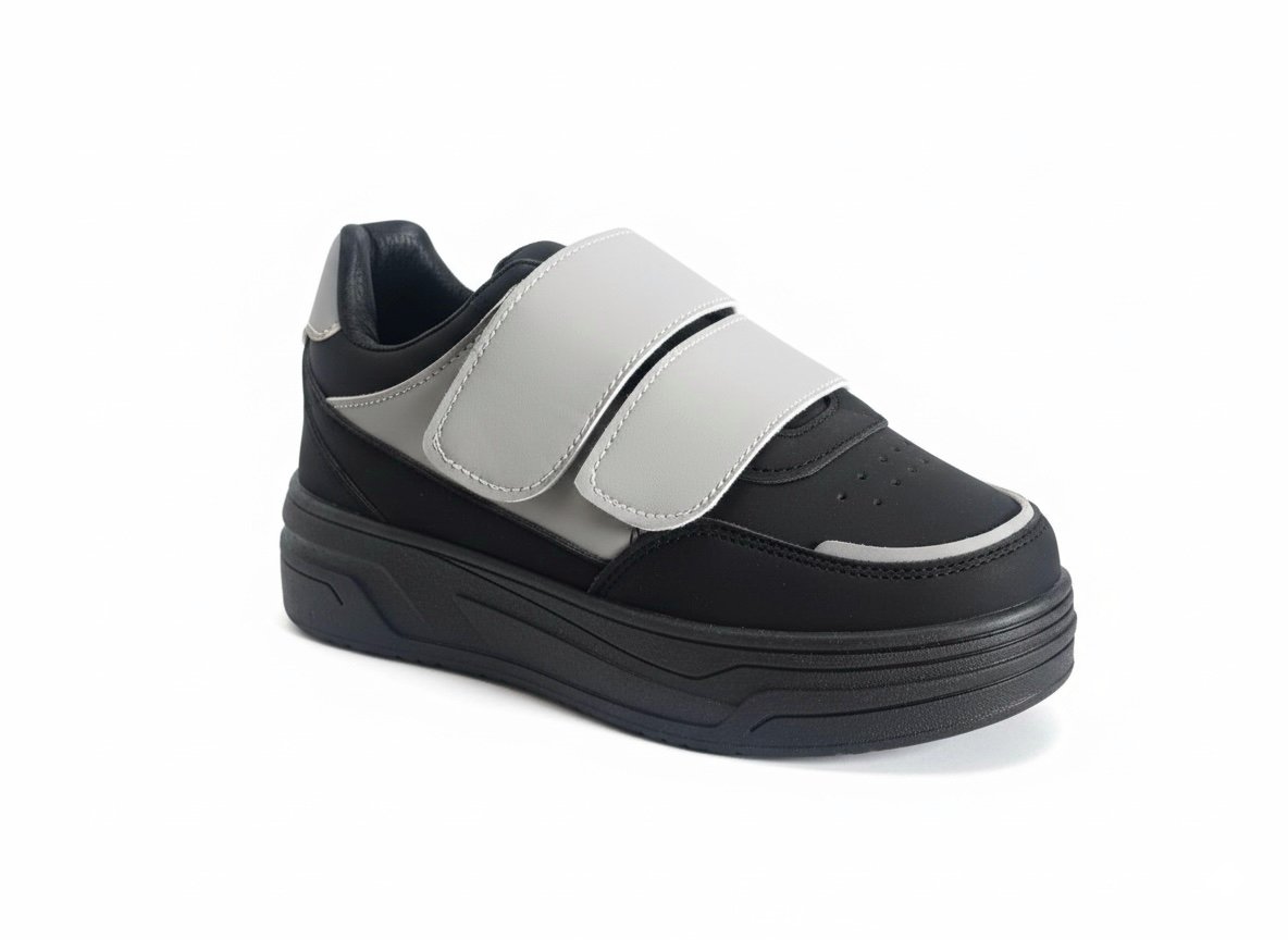 يتميز بجزء علوي من خامة جلد صناعي ناعم سهل التنضيف، مع سكرات لاصقة (Velcro) لتثبيت محكم ولبس أسهل من غير مجهود.