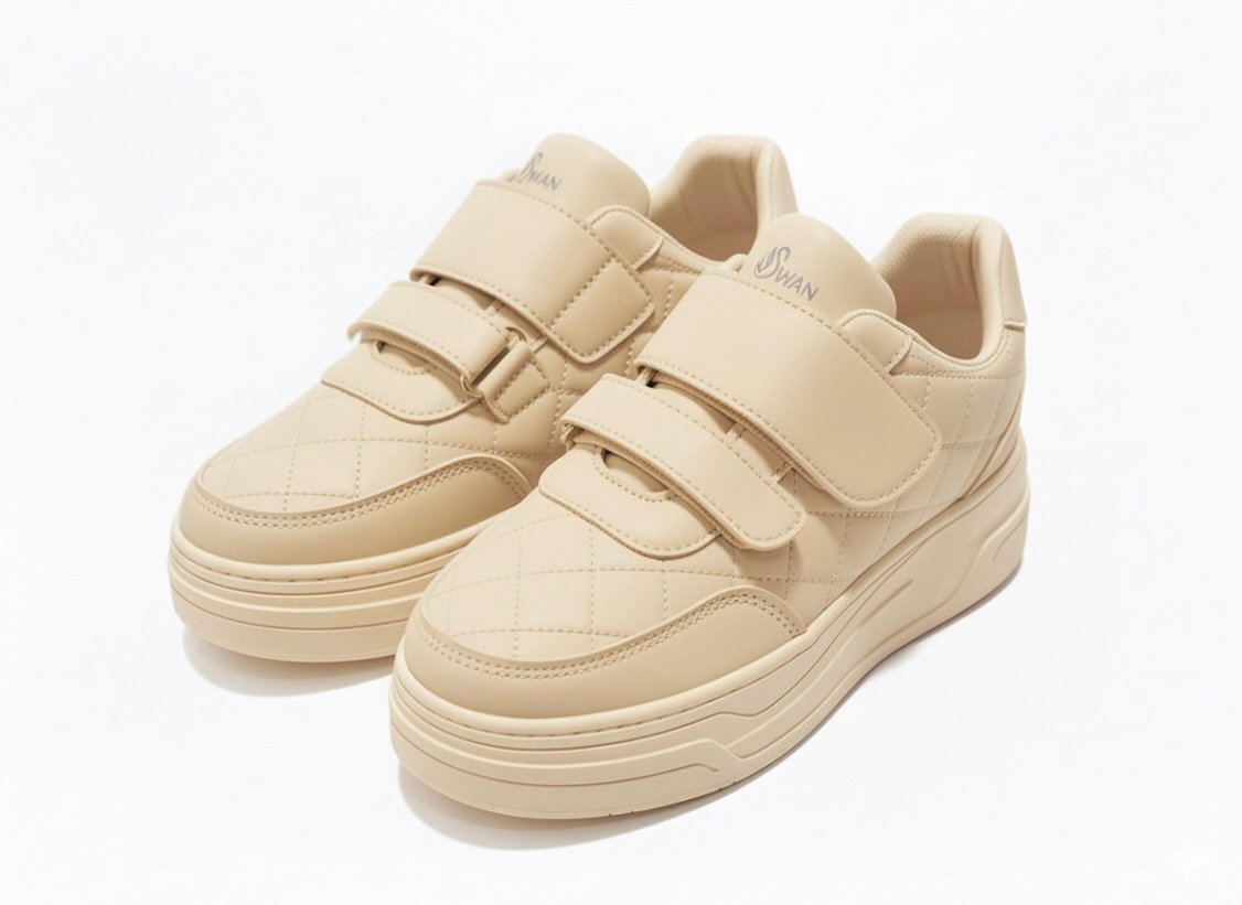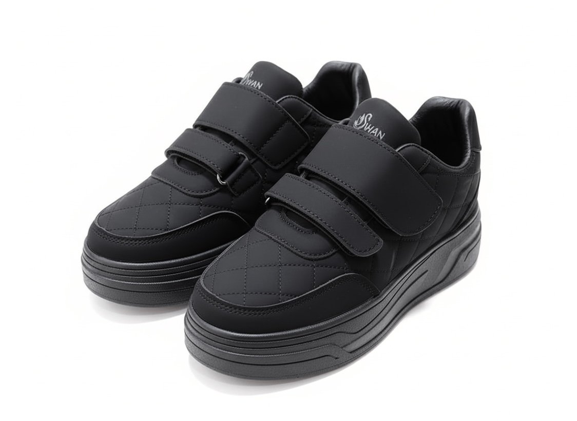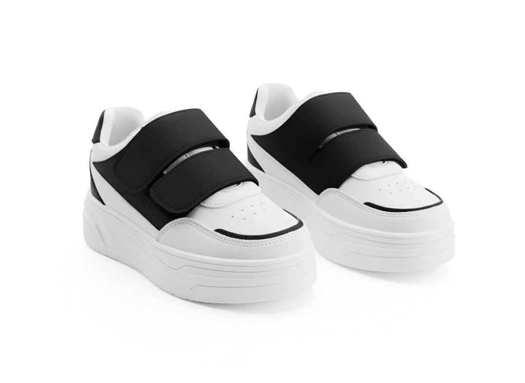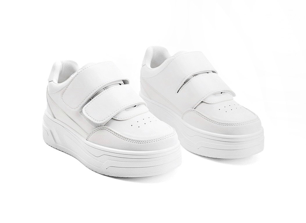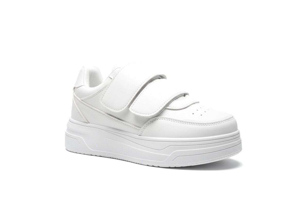 يتميز بجزء علوي من خامة جلد صناعي ناعم سهل التنضيف، مع سكرات لاصقة (Velcro) لتثبيت محكم ولبس أسهل من غير مجهود.