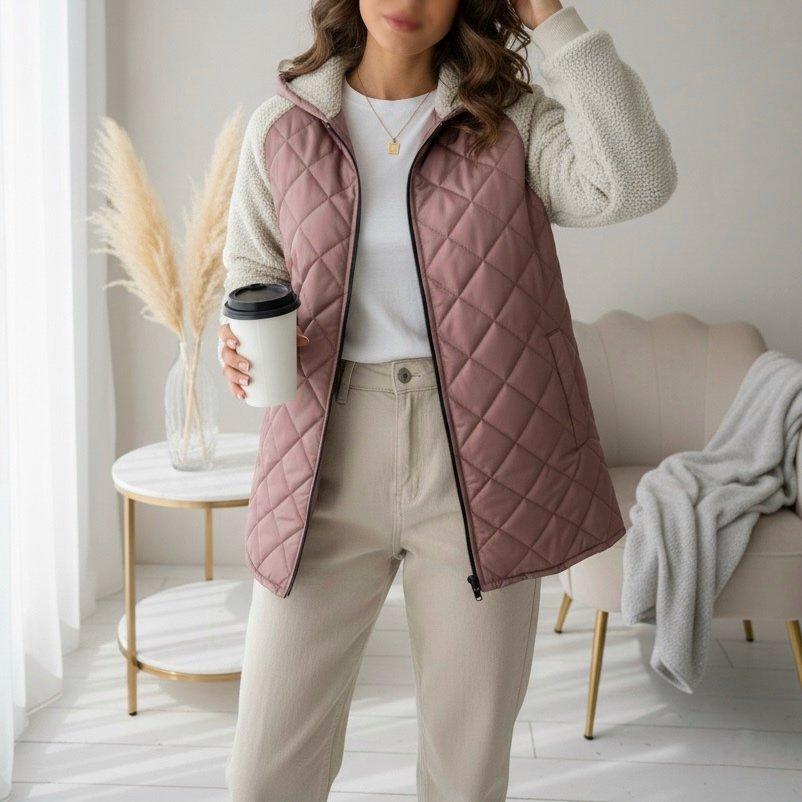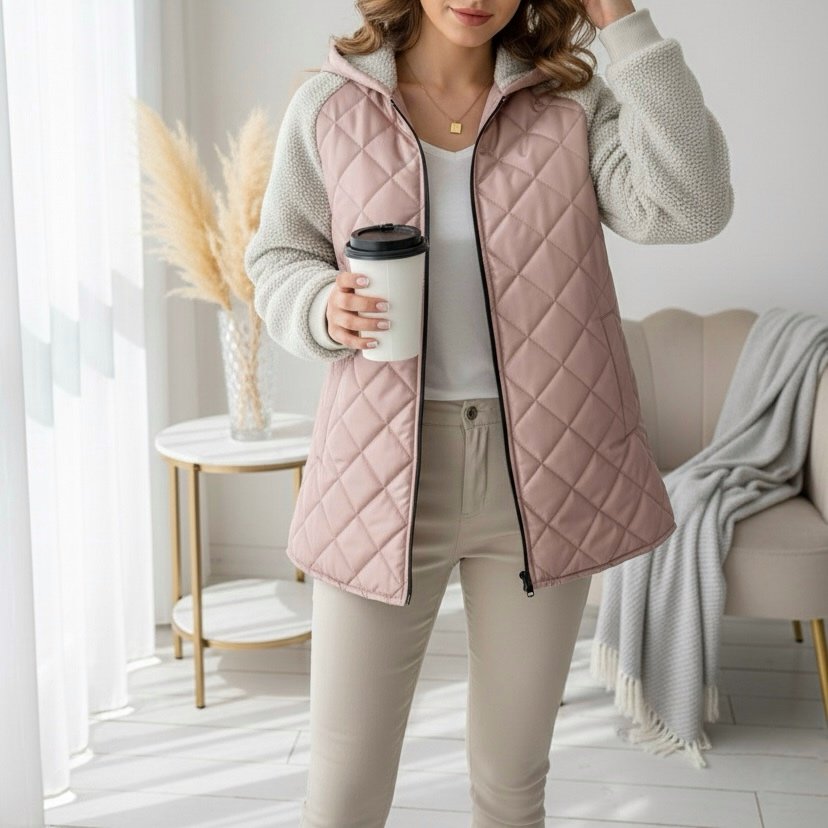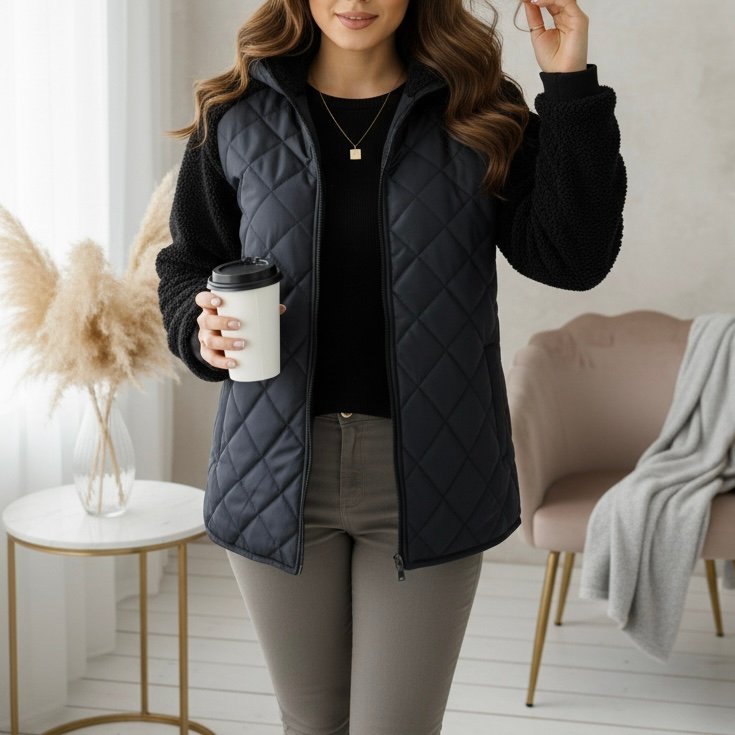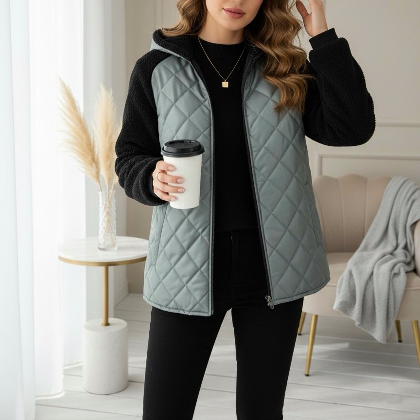 تصميم عصري بخياطة مربعات أنيقة وسوستة أمامية سهلة الإغلاق، مع بطانة ناعمة من الداخل تحافظ على دفئك من غير ما تحسي بثقل.
